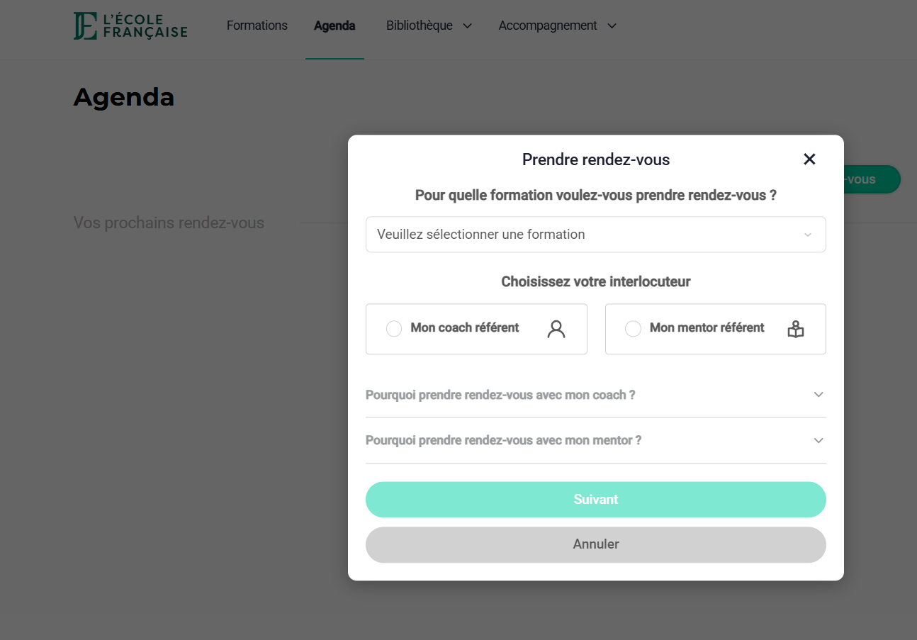 Pour prendre rendez-vous avec votre mentor, suivez ces étapes :