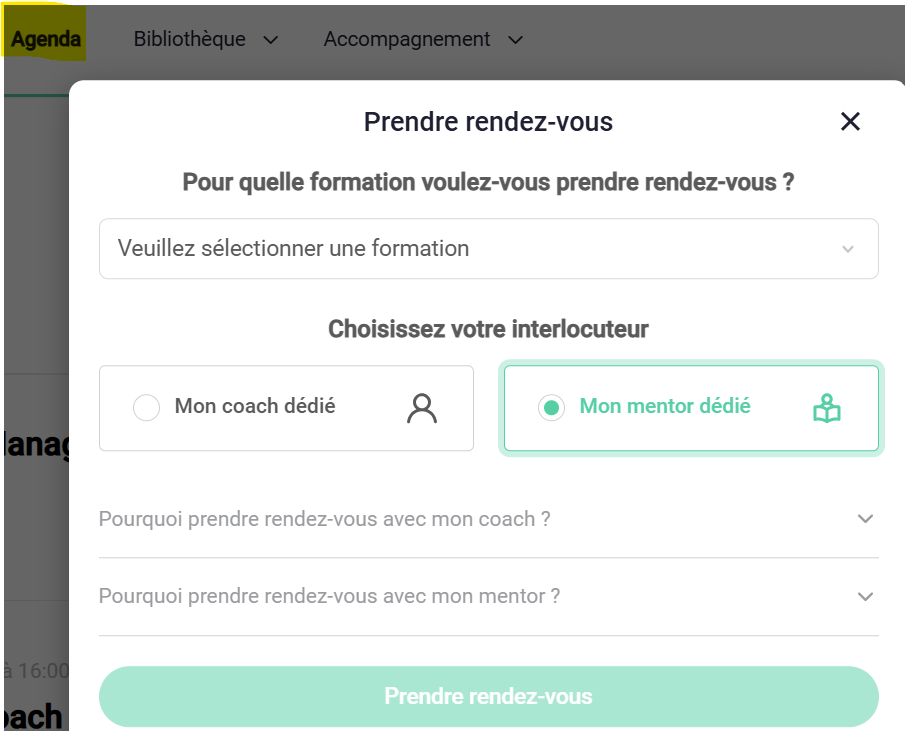- Sélectionnez "mon mentor dédié"