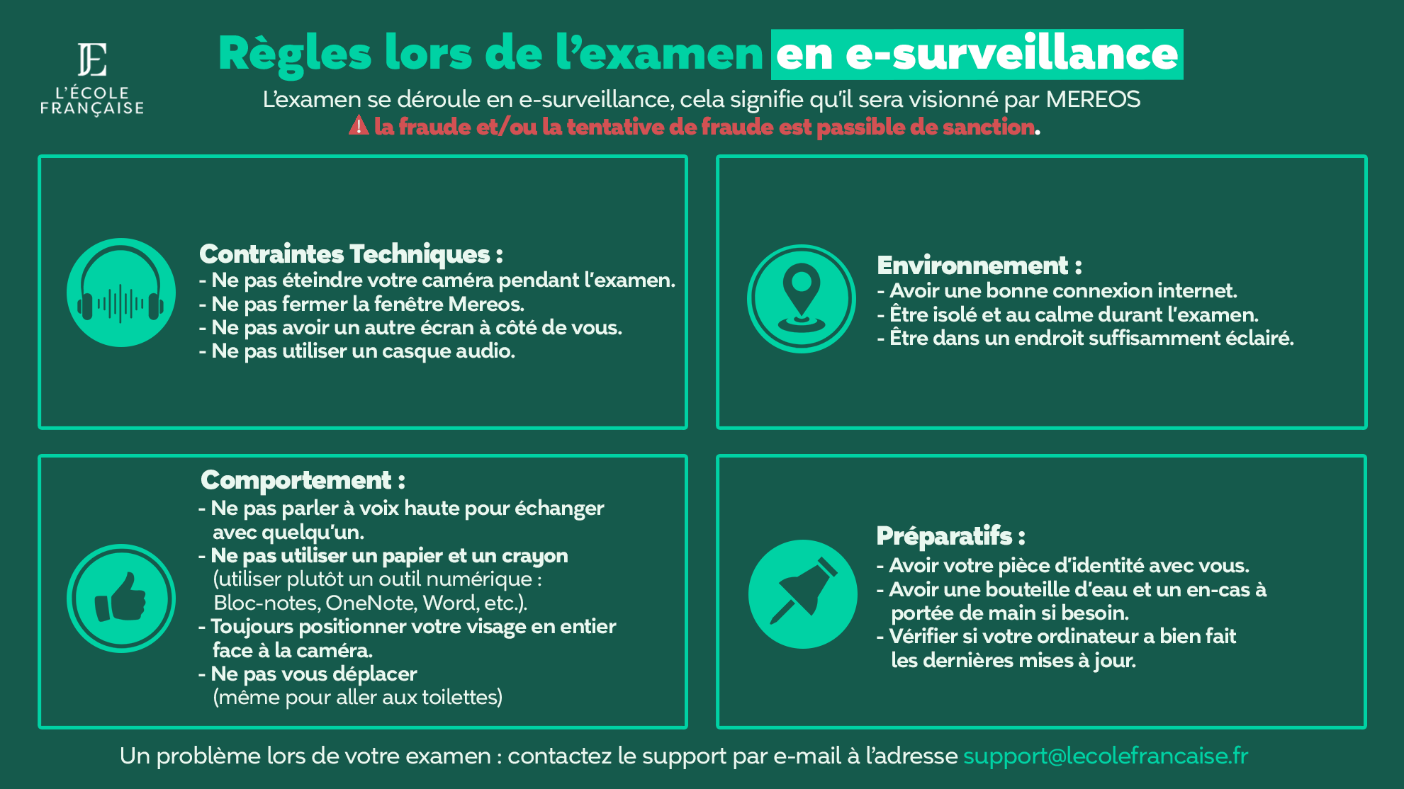 Pour garantir le bon déroulement de la certification et assurer son intégrité, il est essentiel de respecter certaines règles techniques, comportementales et environnementales.